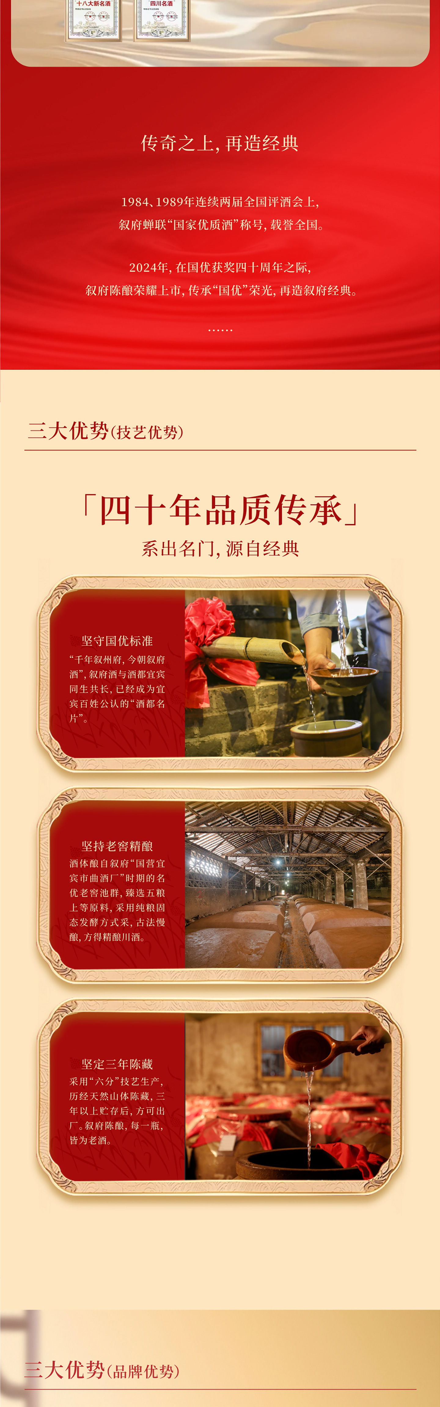 敘府陳釀,以四十年歲月堅(jiān)守,融合“名優(yōu)產(chǎn)區(qū)、精釀技藝、歲月老窖,國優(yōu)品質(zhì)”,用匠心雕琢40年時(shí)光累積的豐滿,銘刻40年國優(yōu)榮耀傳承的印記