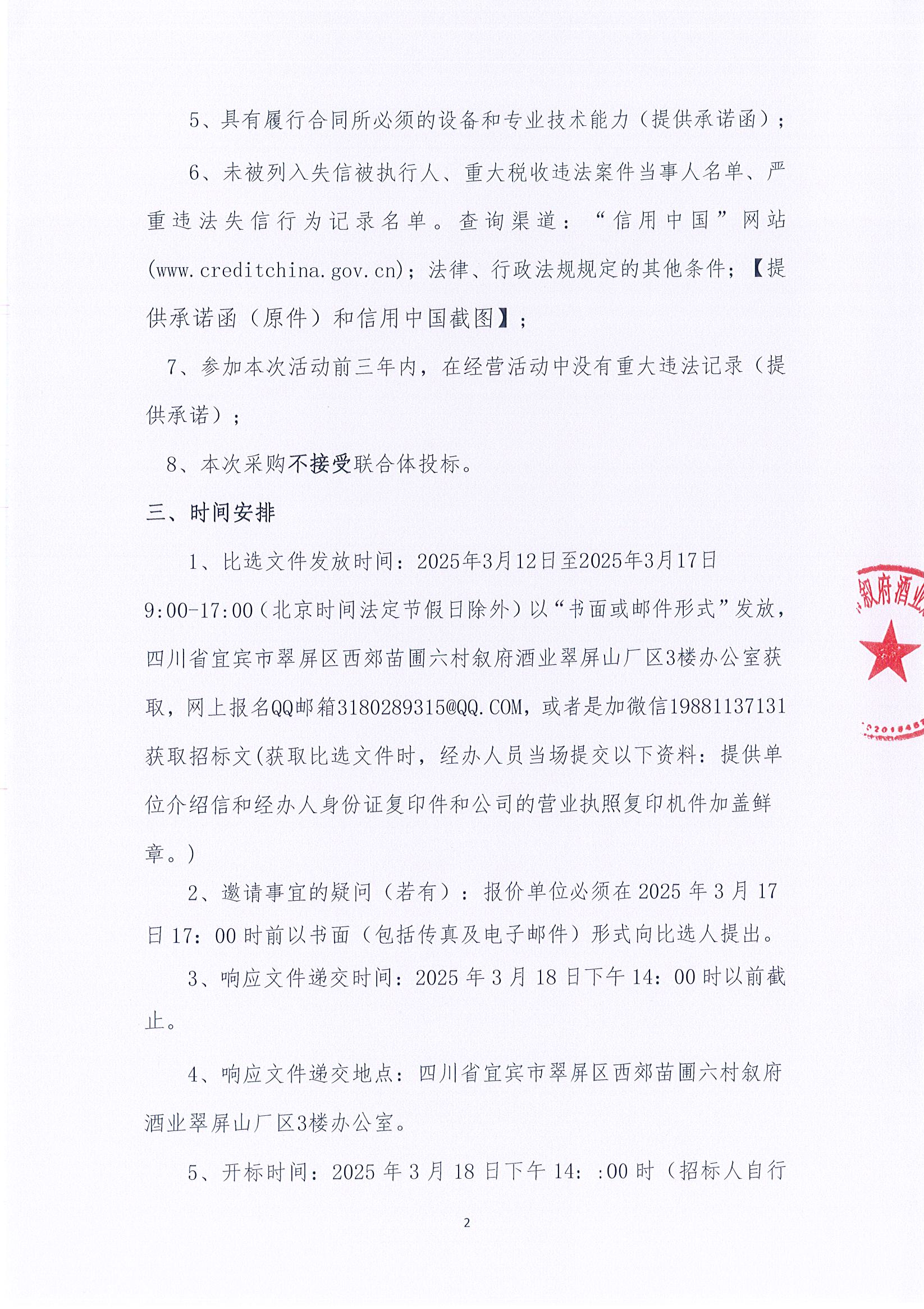 第二次四川省敘府酒業(yè)銷售有限公司成都營銷中心升級改造服務(wù)采購項目公開比選招標(biāo)公告