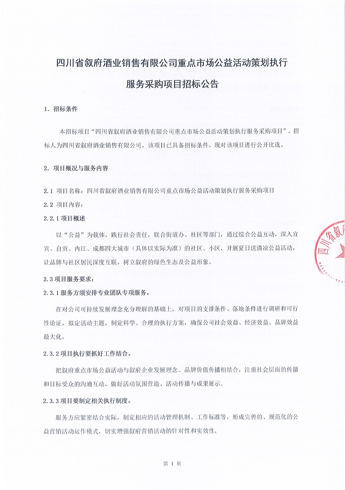 四川省敘府酒業(yè)銷售有限公司宜賓地標建筑長江之珠廣告投放采購項目單一來源采購公告