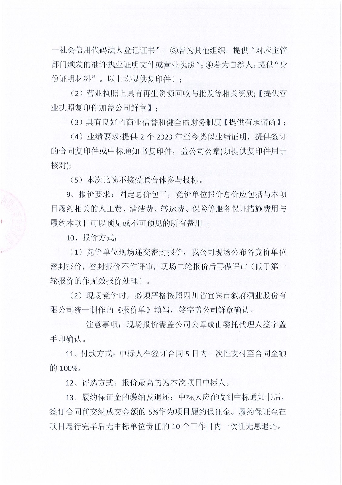 第二次四川省宜賓市敘府酒業(yè)股份有限公司熱季檢修李莊自動(dòng)化量水設(shè)備制安采購(gòu)項(xiàng)目