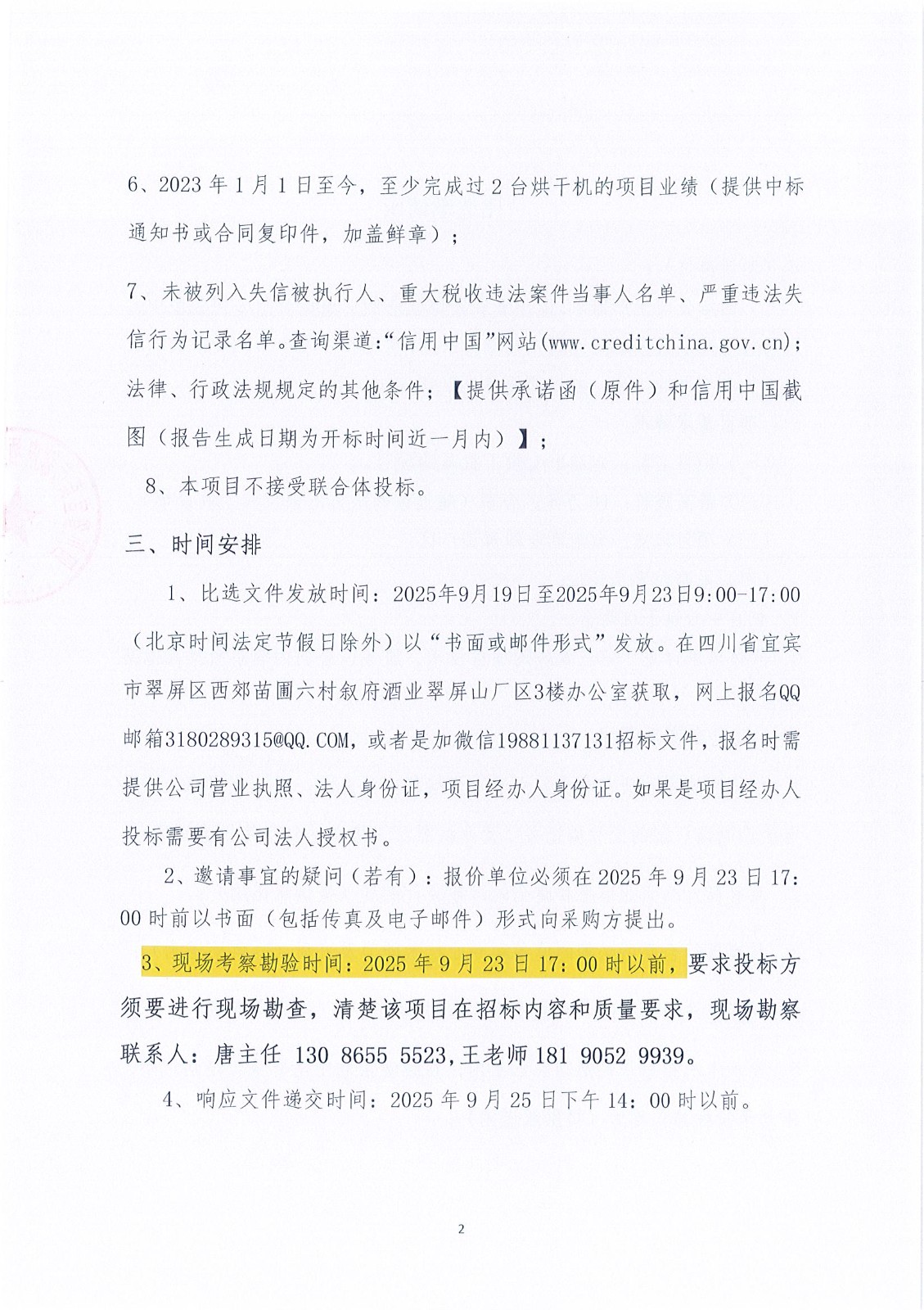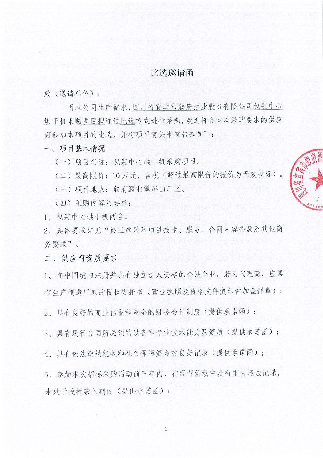 四川省宜賓市敘府酒業(yè)股份有限公司包裝中心烘干機采購項目流標(biāo)公示公告