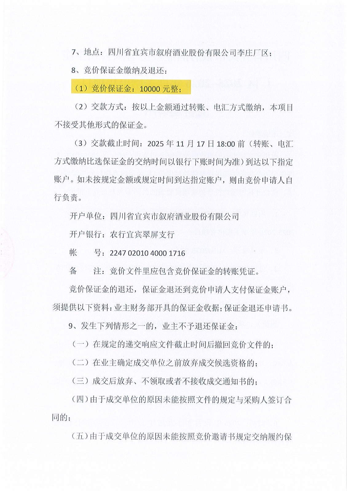 四川省宜賓市敘府酒業(yè)股份有限公司李莊廠區(qū)2025-2026年度丟糟出售項(xiàng)目競(jìng)價(jià)結(jié)果公示公告